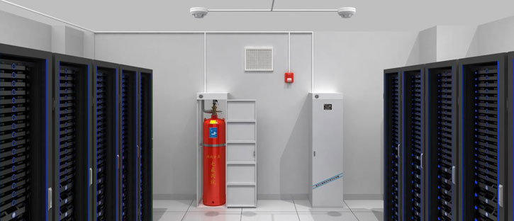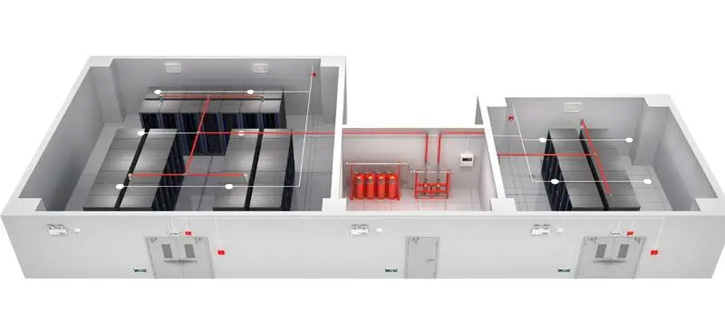 機房消防報警及滅火系統(tǒng)采用有管網(wǎng)全淹沒方式,并采用氣體滅火劑,探測器配置方式為智能感煙探測器、智能感溫探測器搭配,只有兩種探測器同時報警,氣體滅火系統(tǒng)才會發(fā)生聯(lián)動,同時還設(shè)有遠程手動啟動及機械手動方式。